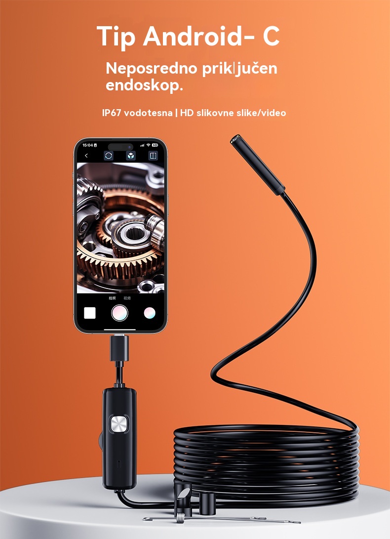 📱[5 m]Čisto nov 7-milimetrski industrijski endoskop z neposrednim priključkom kamere tipa C, združljiv s telefoni Android (vodoodporen endoskop)