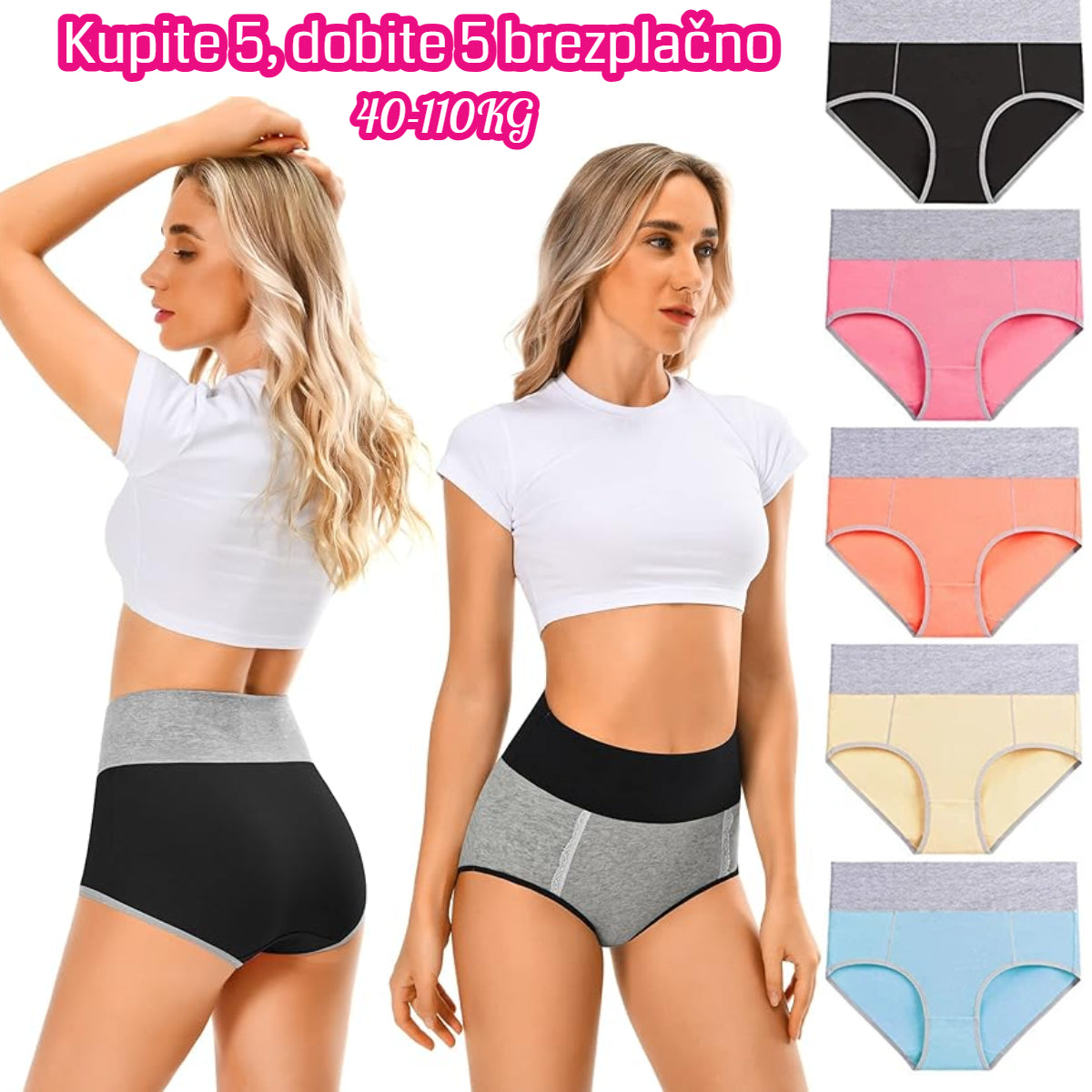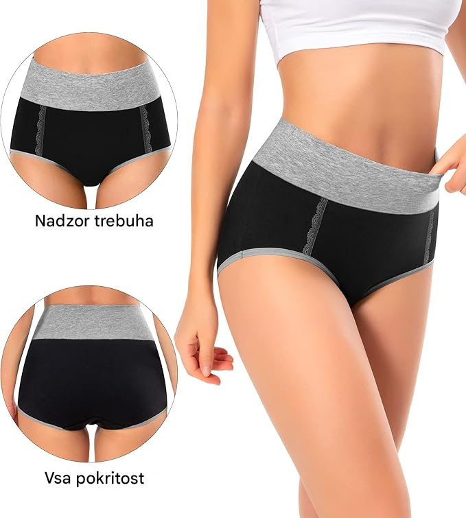 😍[1 komplet 5 kosov] Antibakterijsko spodnje perilo z visokim pasom iz čistega bombaža, ki odvaja vlago