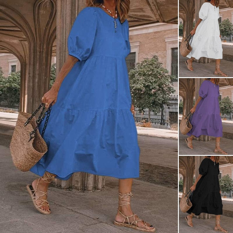 【S-5XL】Ženska poletna obleka v češkem slogu, vintage obleka z okroglim izrezom v različnih barvah